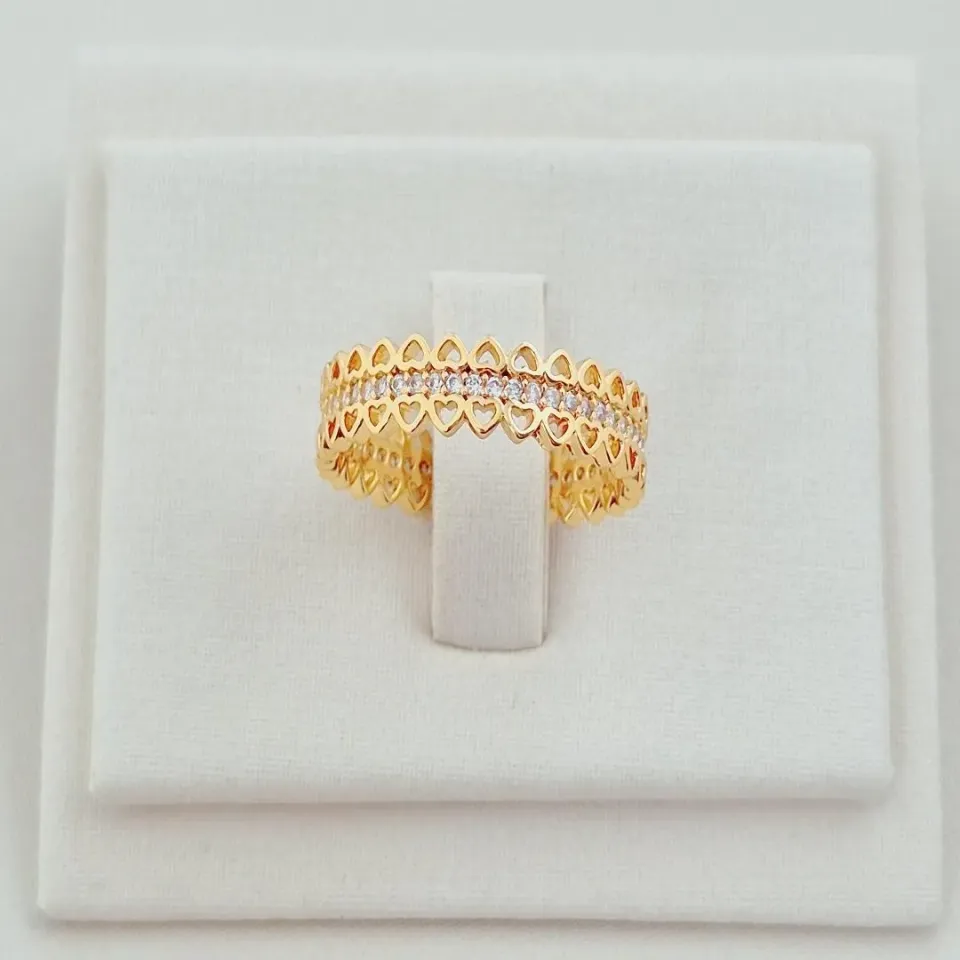 Anel Mini Zircônias e Micro Corações