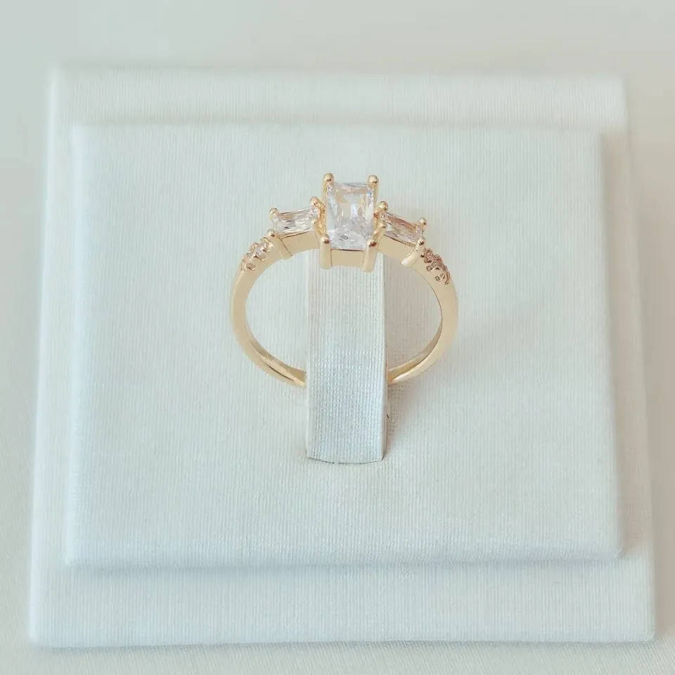 Anel com Zircônia Quadrada Cristal e Detal...