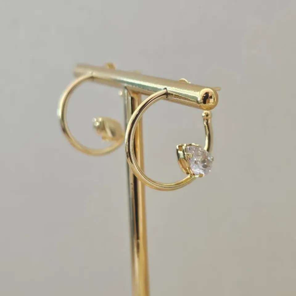 Brinco Coração Cravejado - Banho Prata...