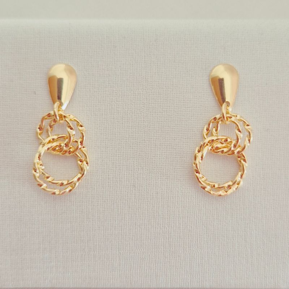 Brinco Pendente Círculos Intercalados...